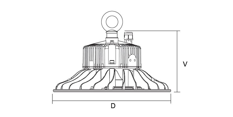 LED průmyslové kruhové svítidlo určené pro závěsnou/přisazenou/nástěnnou montáž. Vhodné do vysokých prostor nad 6m. Vysoká mechanická odolnost. Žebrování pro pasivní chlazení umožňuje provoz při vysokých teplotách. Svítidlo se dodává standardně pouze s okem pro zavěšení. Nastavitelná konzole nebo AL reflektor je nutné objednat zvlášť.