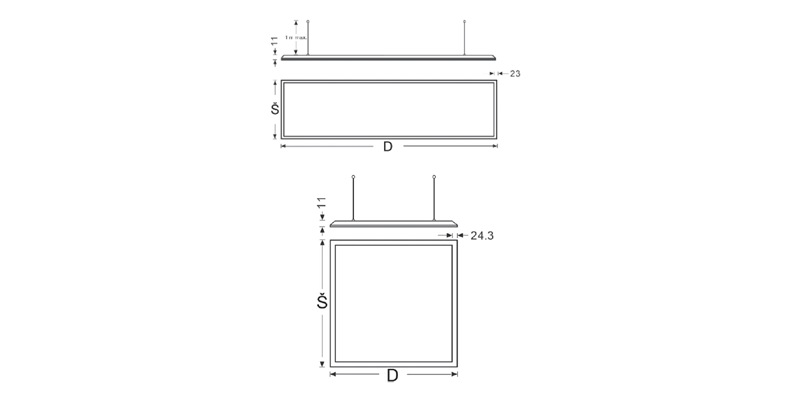 LED kancelářské svítidlo s transparentním difuzérem s přímou a nepřímou složkou osvětlení. Určené pouze pro závěsnou montáž.