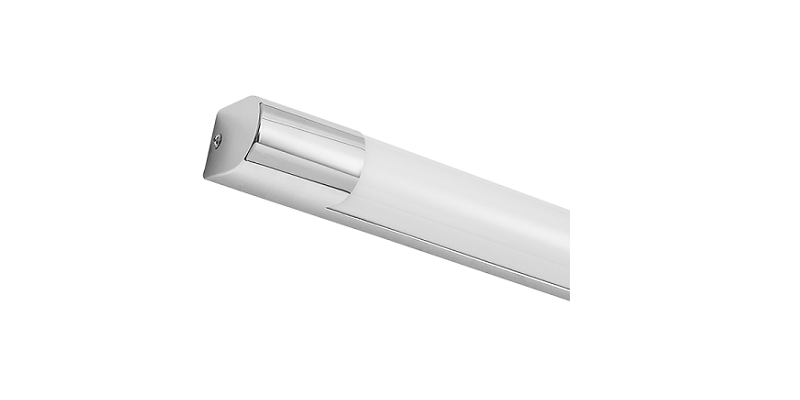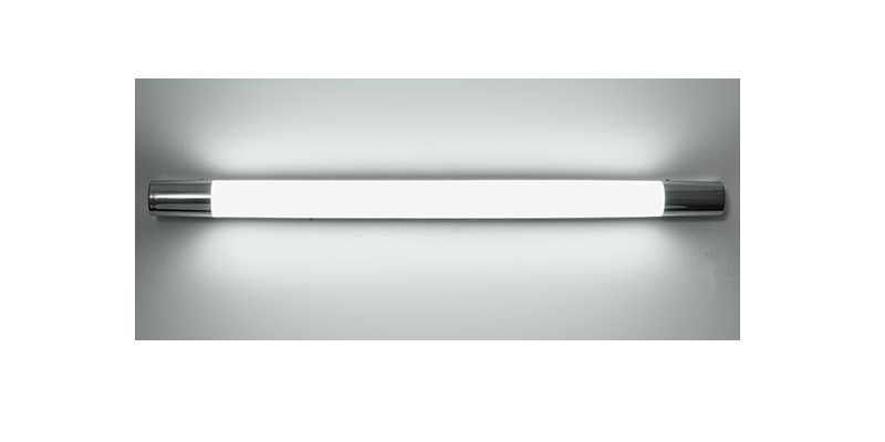 Nástěnné svítidlo do koupelny nad zrcadlo vyrobené z nerezu a plastu.